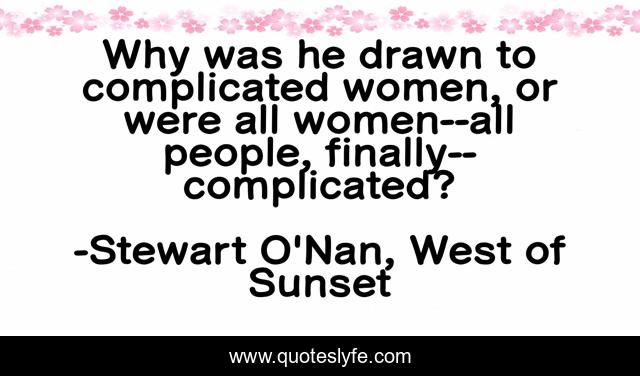 "Stewart O'Nan, West of Sunset Quotes." Quoteslyfe.com, 2025. Sat. 06 Dec. 2025. <https://www.quoteslyfe.com/quote/Why-was-he-drawn-to-complicated-women-127710>.