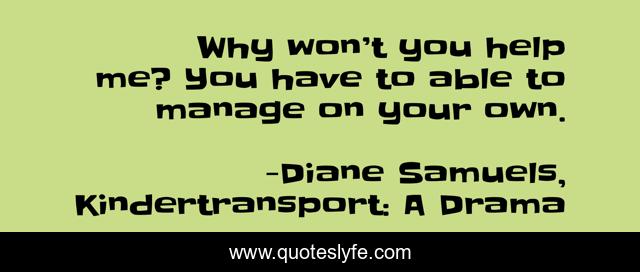 "Diane Samuels, Kindertransport: A Drama Quotes." Quoteslyfe.com, 2025. Sun. 07 Dec. 2025. <https://www.quoteslyfe.com/quote/Why-won-t-you-help-me-You-86486>.
