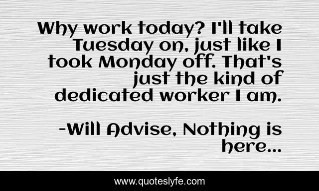 "Will Advise, Nothing is here... Quotes." Quoteslyfe.com, 2025. Sat. 06 Dec. 2025. <https://www.quoteslyfe.com/quote/Why-work-today-I-ll-take-Tuesday-230374>.