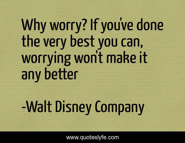 This page presents the quote "Why worry? If you've done the very best you can, worrying won't make it any better". Author of this quote is Walt Disney Company. .