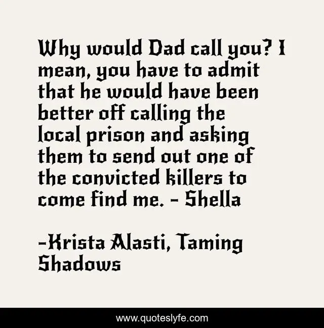 "Krista Alasti, Taming Shadows Quotes." Quoteslyfe.com, 2025. Sat. 06 Dec. 2025. <https://www.quoteslyfe.com/quote/Why-would-Dad-call-you-I-mean-41219>.
