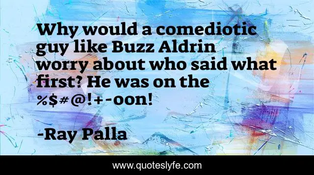 This page presents the quote "Why would a comediotic guy like Buzz Aldrin worry about who said what first? He was on the %$#@!+-oon!". Author of this quote is Ray Palla. This quote is about funny, comediotic, moon, silly, comic, comedy,.