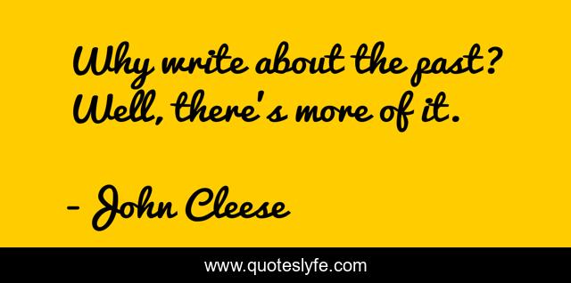 This page presents the quote "Why write about the past? Well, there's more of it.". Author of this quote is John Cleese. This quote is about funny, comedy, history, historical-fiction, writing,.