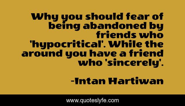 This page presents the quote "Why you should fear of being abandoned by friends who 'hypocritical'. While the around you have a friend who 'sincerely'.". Author of this quote is Intan Hartiwan. .