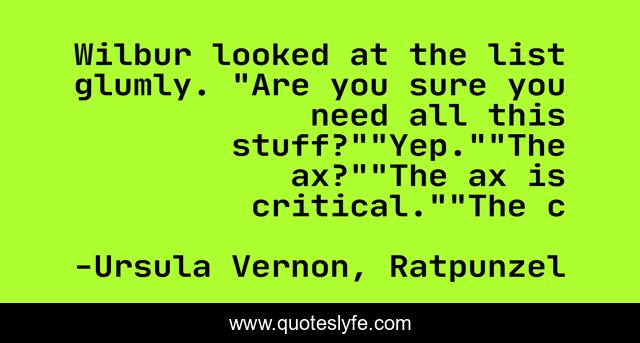 "Ursula Vernon, Ratpunzel Quotes." Quoteslyfe.com, 2025. Sun. 07 Dec. 2025. <https://www.quoteslyfe.com/quote/Wilbur-looked-at-the-list-glumly-Are-151554>.
