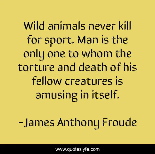 "James Anthony Froude Quotes." Quoteslyfe.com, 2025. Mon. 08 Dec. 2025. <https://www.quoteslyfe.com/quote/Wild-animals-never-kill-for-sport-Man-295055>.