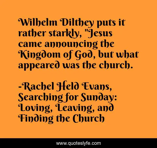"Rachel Held Evans, Searching for Sunday: Loving, Leaving, and Finding the Church Quotes." Quoteslyfe.com, 2025. Sat. 06 Dec. 2025. <https://www.quoteslyfe.com/quote/Wilhelm-Dilthey-puts-it-rather-starkly-Jesus-30313>.