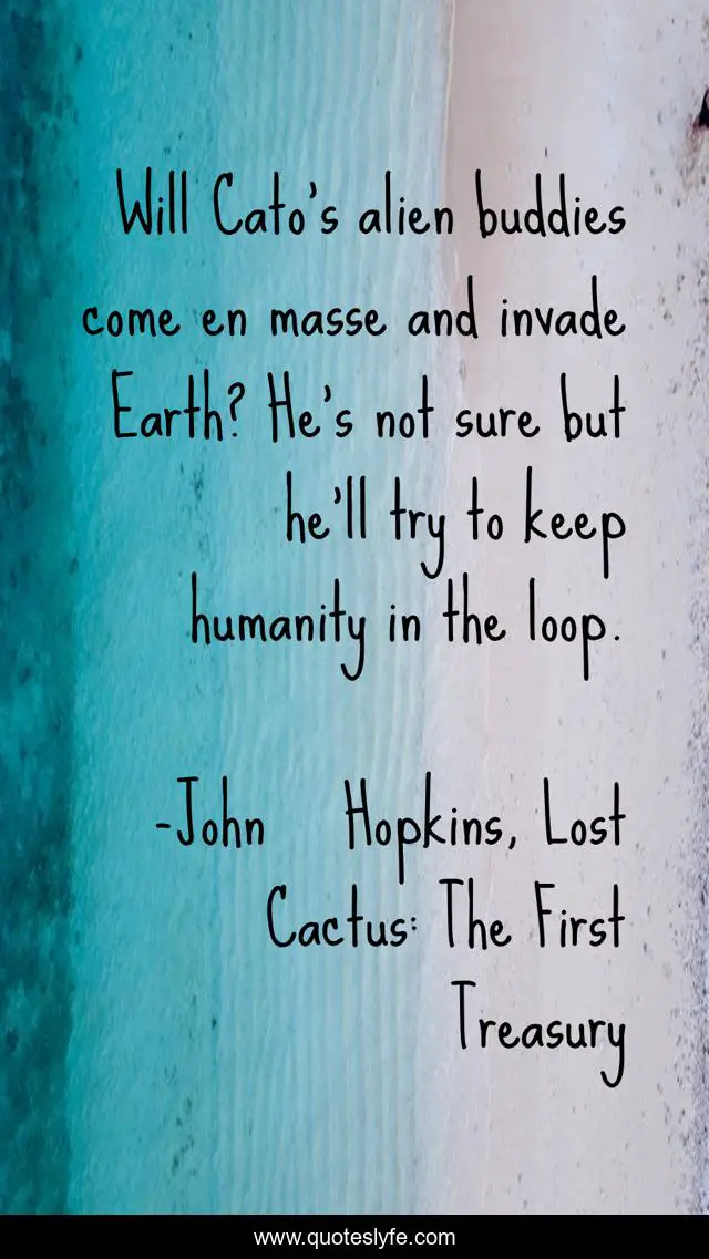 "John Hopkins, Lost Cactus: The First Treasury Quotes." Quoteslyfe.com, 2025. Mon. 08 Dec. 2025. <https://www.quoteslyfe.com/quote/Will-Cato-s-alien-buddies-come-en-157300>.