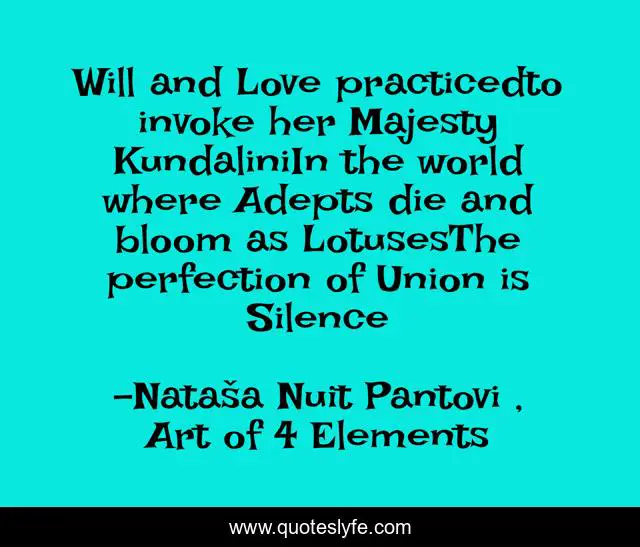 "Nataša Nuit Pantović, Art of 4 Elements Quotes." Quoteslyfe.com, 2025. Fri. 05 Dec. 2025. <https://www.quoteslyfe.com/quote/Will-and-Love-practicedto-invoke-her-Majesty-117751>.