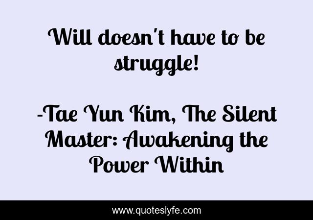 "Tae Yun Kim, The Silent Master: Awakening the Power Within Quotes." Quoteslyfe.com, 2025. Fri. 05 Dec. 2025. <https://www.quoteslyfe.com/quote/Will-doesn-t-have-to-be-struggle-211903>.
