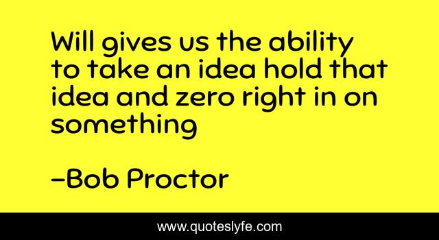 This page presents the quote "Will gives us the ability to take an idea hold that idea and zero right in on something". Author of this quote is Bob Proctor. This quote is about personal-growth, self-development, self-help,.