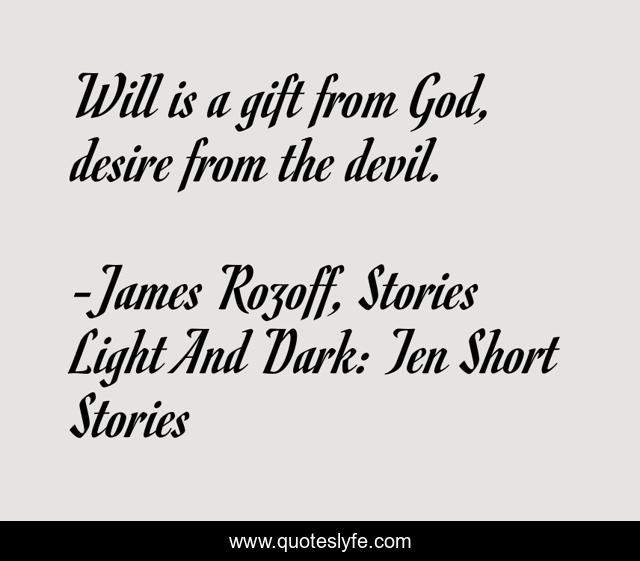 This page presents the quote "Will is a gift from God, desire from the devil.". Author of this quote is James Rozoff, Stories Light And Dark: Ten Short Stories. This quote is about desire, free-will,.