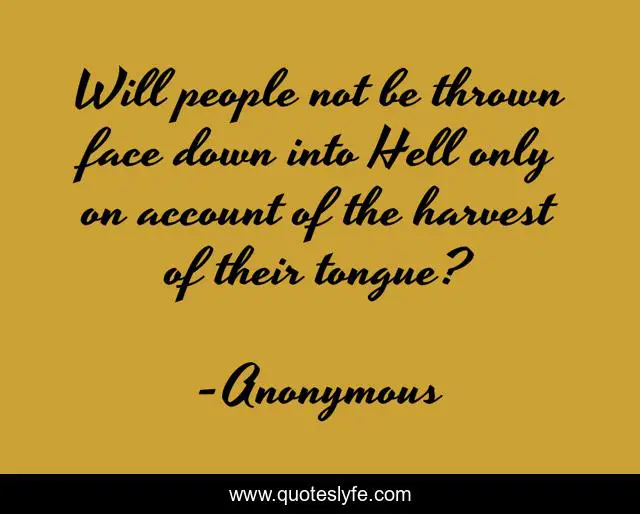 This page presents the quote "Will people not be thrown face down into Hell only on account of the harvest of their tongue?". Author of this quote is Anonymous. This quote is about remaining-silent, silence,.