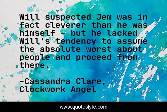 "Cassandra Clare, Clockwork Angel Quotes." Quoteslyfe.com, 2025. Mon. 08 Dec. 2025. <https://www.quoteslyfe.com/quote/Will-suspected-Jem-was-in-fact-cleverer-40355>.