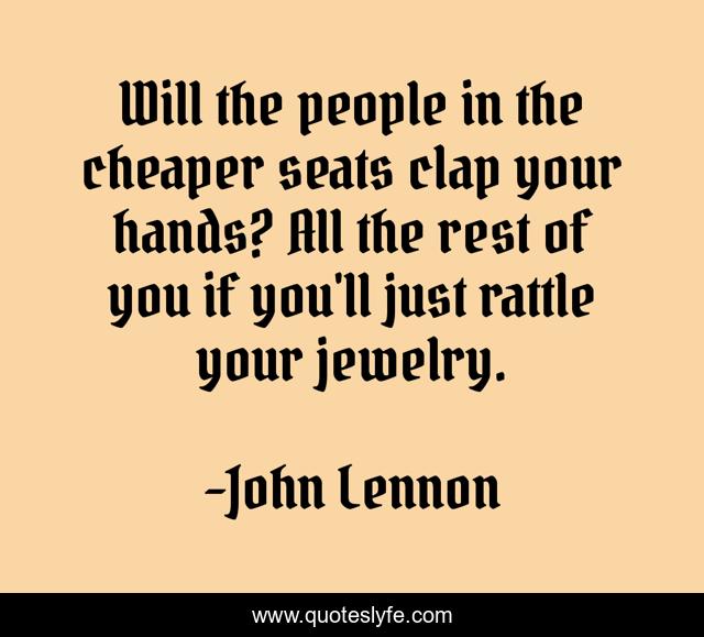 This page presents the quote "Will the people in the cheaper seats clap your hands? All the rest of you if you'll just rattle your jewelry.". Author of this quote is John Lennon. This quote is about introductions, openers,.