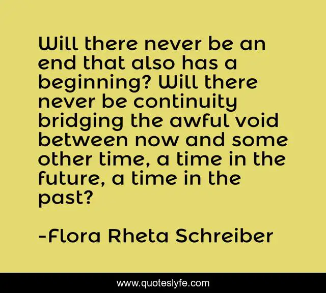 "Flora Rheta Schreiber Quotes." Quoteslyfe.com, 2025. Fri. 05 Dec. 2025. <https://www.quoteslyfe.com/quote/Will-there-never-be-an-end-that-103984>.