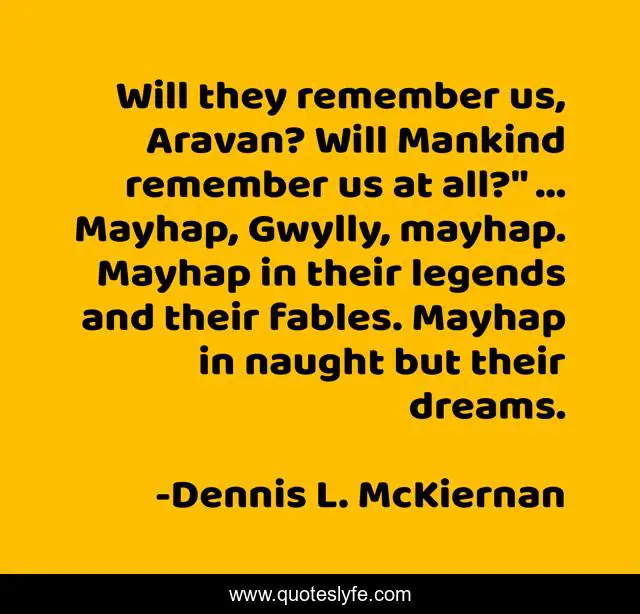 "Dennis L. McKiernan Quotes." Quoteslyfe.com, 2025. Sat. 06 Dec. 2025. <https://www.quoteslyfe.com/quote/Will-they-remember-us-Aravan-Will-Mankind-82055>.