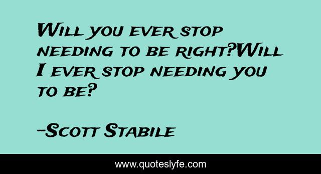 This page presents the quote "Will you ever stop needing to be right?Will I ever stop needing you to be?". Author of this quote is Scott Stabile. This quote is about need, relationships, wrong, right,.