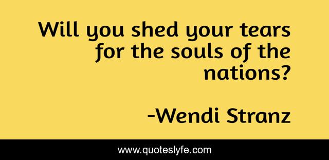 This page presents the quote "Will you shed your tears for the souls of the nations?". Author of this quote is Wendi Stranz. .