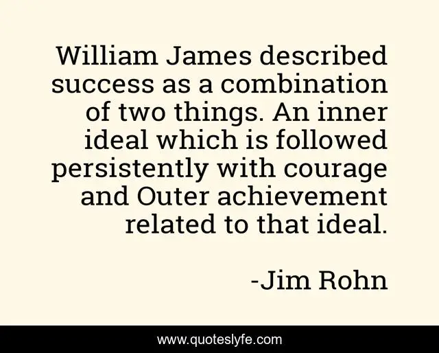 This page presents the quote "William James described success as a combination of two things. An inner ideal which is followed persistently with courage and Outer achievement related to that ideal.". Author of this quote is Jim Rohn. This quote is about personal-development, personal-growth, self-development, self-help,.