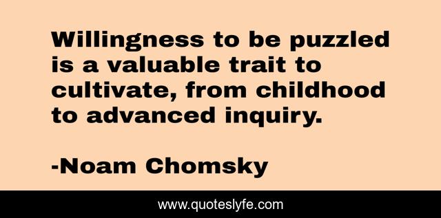 This page presents the quote "Willingness to be puzzled is a valuable trait to cultivate, from childhood to advanced inquiry.". Author of this quote is Noam Chomsky. .