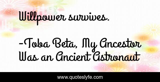 "Toba Beta, My Ancestor Was an Ancient Astronaut Quotes." Quoteslyfe.com, 2025. Sun. 07 Dec. 2025. <https://www.quoteslyfe.com/quote/Willpower-survives-196227>.