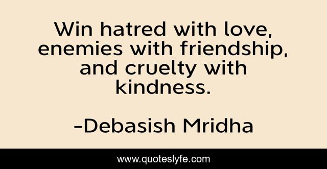 "Debasish Mridha Quotes." Quoteslyfe.com, 2025. Mon. 08 Dec. 2025. <https://www.quoteslyfe.com/quote/Win-hatred-with-love-enemies-with-friendship-68402>.