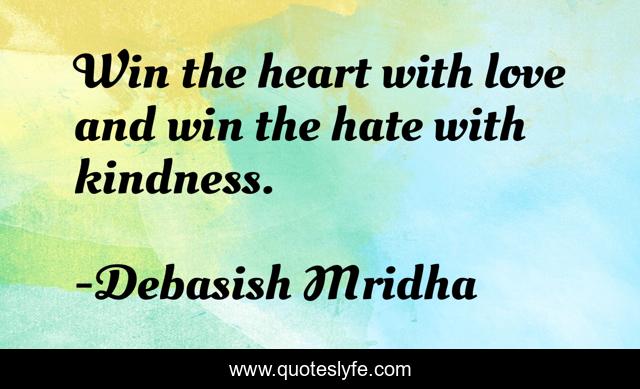 This page presents the quote "Win the heart with love and win the hate with kindness.". Author of this quote is Debasish Mridha. This quote is about heart, love, philosophy, debasish-mridha, quotes, inspirational, how-to-overcome-hate, enthusiasm, kindness,.