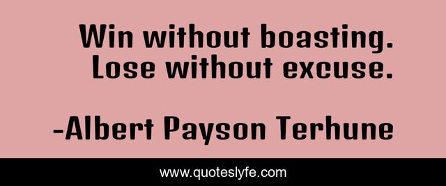 "Albert Payson Terhune Quotes." Quoteslyfe.com, 2025. Sat. 06 Dec. 2025. <https://www.quoteslyfe.com/quote/Win-without-boasting-Lose-without-excuse-249520>.