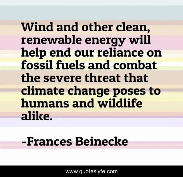"Frances Beinecke Quotes." Quoteslyfe.com, 2025. Sat. 06 Dec. 2025. <https://www.quoteslyfe.com/quote/Wind-and-other-clean-renewable-energy-will-327444>.