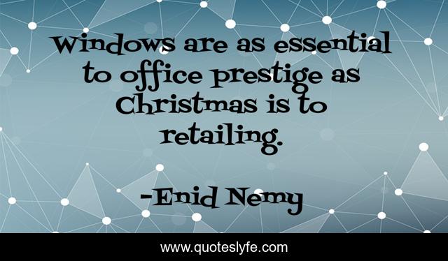 This page presents the quote "Windows are as essential to office prestige as Christmas is to retailing.". Author of this quote is Enid Nemy. This quote is about windows, essential, office,.