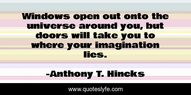 This page presents the quote "Windows open out onto the universe around you, but doors will take you to where your imagination lies.". Author of this quote is Anthony T. Hincks. This quote is about immagination, windows, universe, philosophy, take-you, lies, doors, your, dreams,.