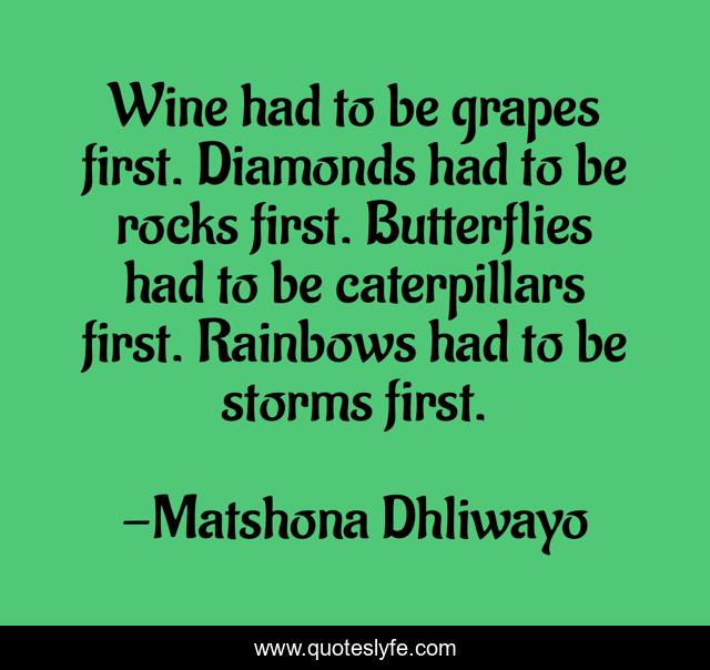"Matshona Dhliwayo Quotes." Quoteslyfe.com, 2025. Sun. 07 Dec. 2025. <https://www.quoteslyfe.com/quote/Wine-had-to-be-grapes-first-Diamonds-57915>.