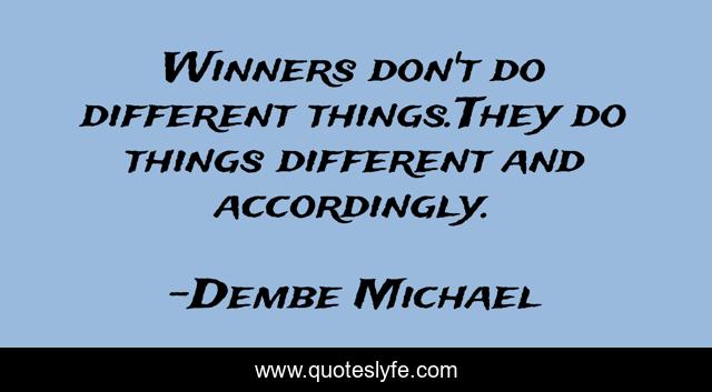 This page presents the quote "Winners don't do different things.They do things different and accordingly.". Author of this quote is Dembe Michael. This quote is about positive, confidence, motivational, optimistic,.