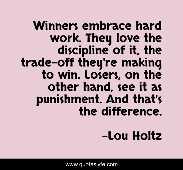 "Lou Holtz Quotes." Quoteslyfe.com, 2025. Mon. 08 Dec. 2025. <https://www.quoteslyfe.com/quote/Winners-embrace-hard-work-They-love-the-286866>.