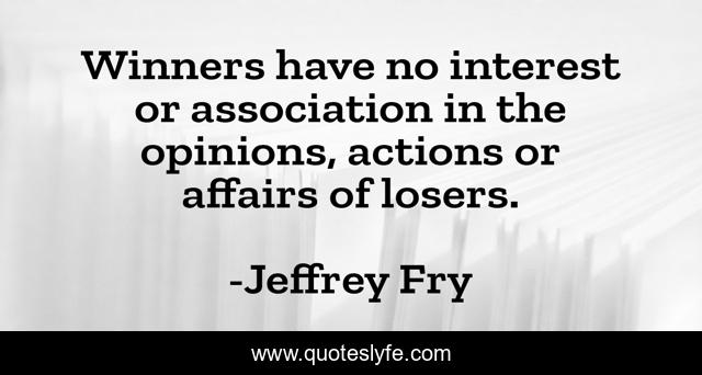 This page presents the quote "Winners have no interest or association in the opinions, actions or affairs of losers.". Author of this quote is Jeffrey Fry. This quote is about affairs, opinions, no-interest, actions, winners, losers, association,.