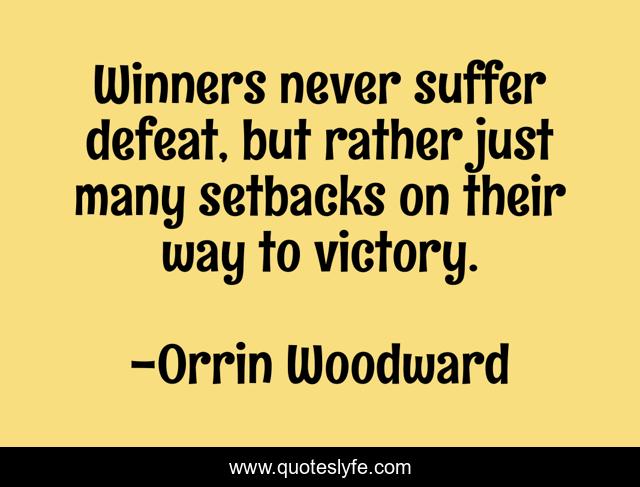 This page presents the quote "Winners never suffer defeat, but rather just many setbacks on their way to victory.". Author of this quote is Orrin Woodward. This quote is about setbacks, victory, persistence, defeat,.