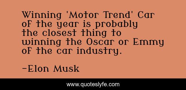This page presents the quote "Winning 'Motor Trend' Car of the year is probably the closest thing to winning the Oscar or Emmy of the car industry.". Author of this quote is Elon Musk. This quote is about oscar, winning, year,.