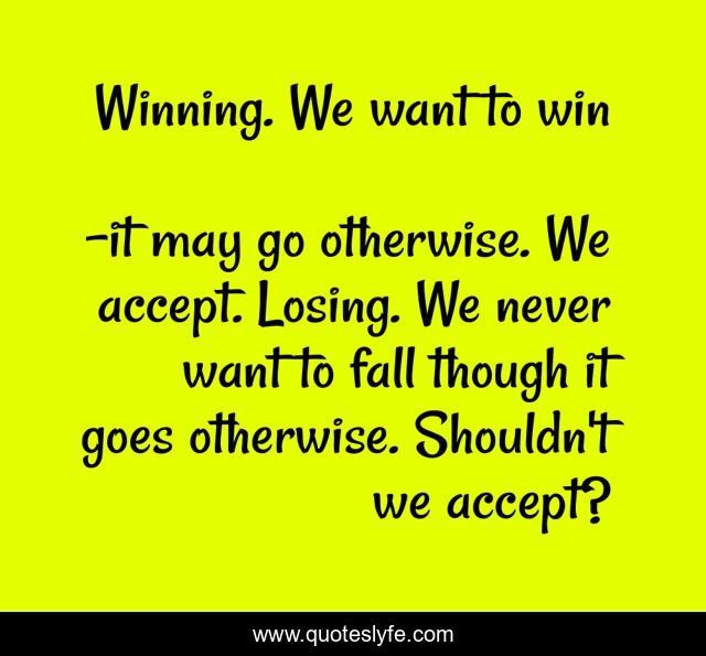 "it may go otherwise. We accept. Losing. We never want to fall though it goes otherwise. Shouldn't we accept? Quotes." Quoteslyfe.com, 2025. Mon. 08 Dec. 2025. <https://www.quoteslyfe.com/quote/Winning-We-want-to-win-249536>.