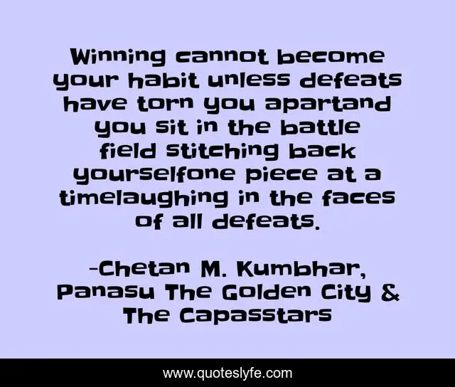 "Chetan M. Kumbhar, Panasu The Golden City & The Capasstars Quotes." Quoteslyfe.com, 2025. Sun. 07 Dec. 2025. <https://www.quoteslyfe.com/quote/Winning-cannot-become-your-habit-unless-defeats-76100>.