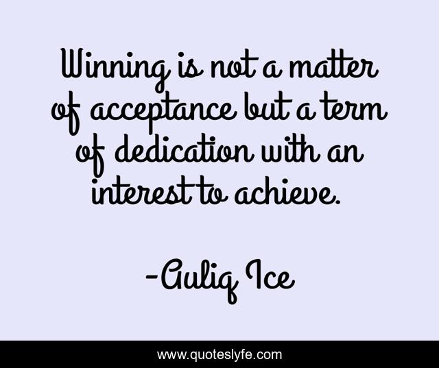 "Auliq Ice Quotes." Quoteslyfe.com, 2025. Sat. 06 Dec. 2025. <https://www.quoteslyfe.com/quote/Winning-is-not-a-matter-of-acceptance-109572>.