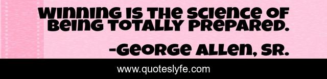 This page presents the quote "Winning is the science of being totally prepared.". Author of this quote is George Allen, Sr.. This quote is about being, winning, prepared,.