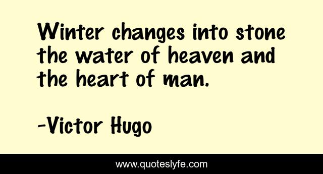This page presents the quote "Winter changes into stone the water of heaven and the heart of man.". Author of this quote is Victor Hugo. This quote is about stone-hearted, winter,.
