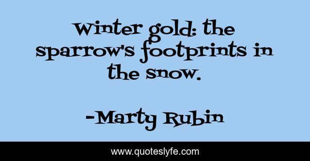 This page presents the quote "Winter gold: the sparrow's footprints in the snow.". Author of this quote is Marty Rubin. This quote is about winter, wonders,.