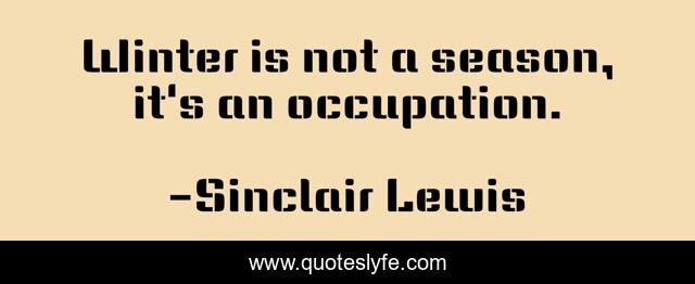 This page presents the quote "Winter is not a season, it's an occupation.". Author of this quote is Sinclair Lewis. .
