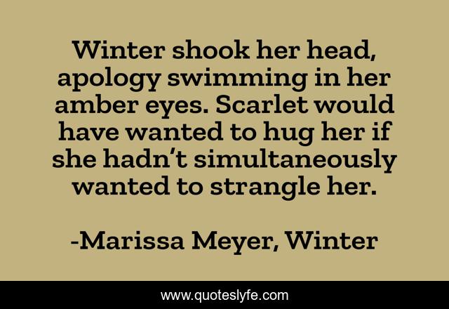 This page presents the quote "Winter shook her head, apology swimming in her amber eyes. Scarlet would have wanted to hug her if she hadn’t simultaneously wanted to strangle her.". Author of this quote is Marissa Meyer, Winter. This quote is about scarlet, winter,.