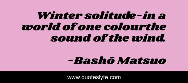 This page presents the quote "Winter solitude-in a world of one colourthe sound of the wind.". Author of this quote is Bashō Matsuo. This quote is about poetry, haiku,.
