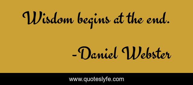 This page presents the quote "Wisdom begins at the end.". Author of this quote is Daniel Webster. This quote is about begins, end,.