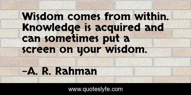 "A. R. Rahman Quotes." Quoteslyfe.com, 2025. Fri. 05 Dec. 2025. <https://www.quoteslyfe.com/quote/Wisdom-comes-from-within-Knowledge-is-acquired-306815>.