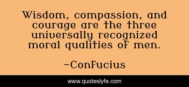 This page presents the quote "Wisdom, compassion, and courage are the three universally recognized moral qualities of men.". Author of this quote is Confucius. This quote is about compassion, men, wisdom,.